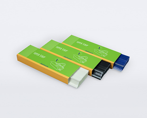 Each carton contains 500 narrow, 400 medium or 300 wide strips, packaged in boxes of 100 strips. Super Strips are also compatible with Fastback 15xs and 9 models (narrow strips only for 9 model).