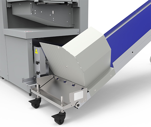 The DigiFold Ultra comes standard with dual folding knives, one DynaCreaser, two slitting knives and one cross-cut knife. The Ultra maintains the high productivity seen on the previous generation Pro XL platforms. There are also attachments such as the Trim Waste Conveyor Belt and BST-4000 Belt Stacker which make the Ultra suited for longer unattended production runs.