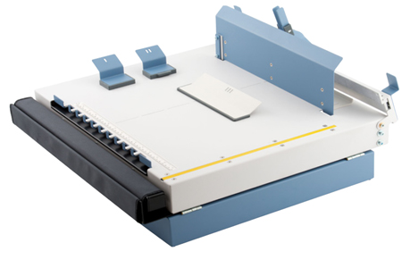 Manual BooXTer side staple binding, binding thickness up to 3/8" (depending on materials).