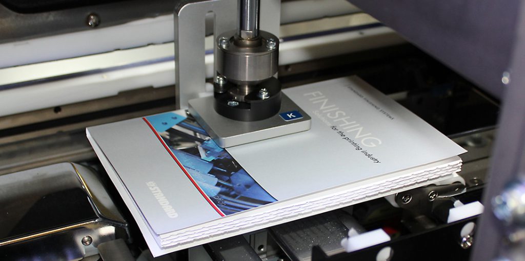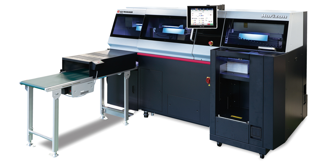 The HT-300 Three-side Trimmer features a fully automated setup with color touchscreen control. The system offers higher productivity, unique corner cut capability, optional flap cover trimming, and it’s automated setup can be barcode driven.