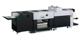 - Higher productivity: The RD-N4055 system can increase productivity by 20% compared to the previous model. For example, using a max sheet size of 21.65” x 15.74” and long-edge imposition (4×9), the system can support 36-up business card applications, reducing the required number of parent sheets from 9 to only 7 with easy separation and stacking. In addition, a new minimum sheet spec of 3.15” x 1.969” enables more efficient production of small pieces.