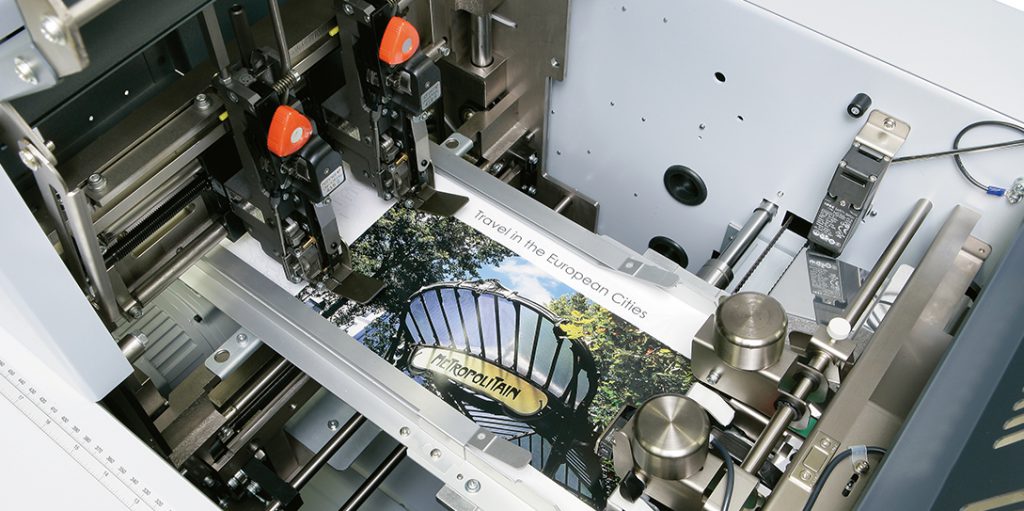 The Horizon SPF/FC-200A is a fully-automated combination stitcher/folder and face trimmer that is equipped with a user-friendly 10.4″ intelligent color touchscreen that provides advanced set-up automation and centralized control.