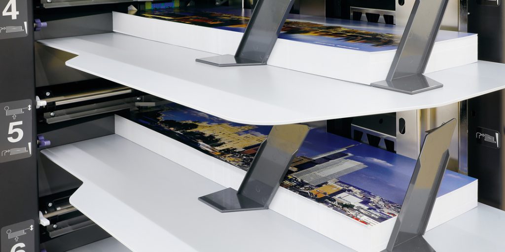 Combined with the StitchLiner Mark III Saddlestitcher or the SPF 200L Bookletmaker, the system is capable of producing A4 landscape booklets, large format calendars, and more with ease and efficiency.