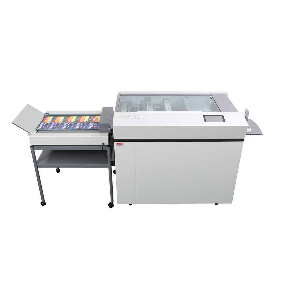 The Aerocut Prime is an ideal solution for finishing, especially for short-run digitally printed applications, such as business cards, post cards, invitations, greeting cards, leaflets, tickets and more. It features 2 single blade slitters to trim top & bottom margins, and 2 double blade slitters for center gutters and precise accuracy. The durable blades cut stocks up to 400 gsm.