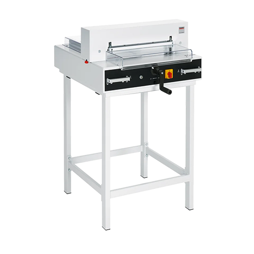 • Fully automatic tabletop cutter with electric blade drive, automatic clamp, and easy cut blade activation