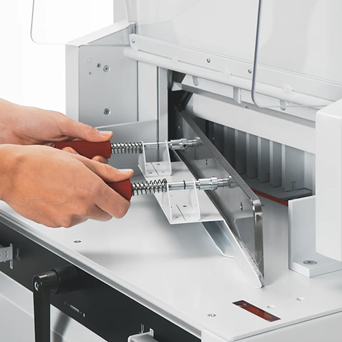 • Fully automatic cutter with electric blade drive, automatic clamp, and EASY CUT blade activation