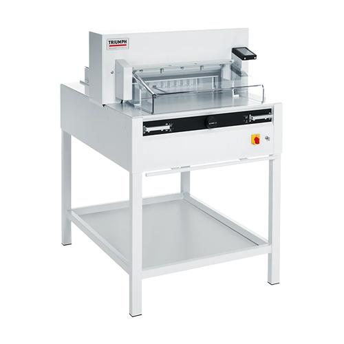 • Programmable cutter with automatic clamp, power back gauge, and digital touchpad