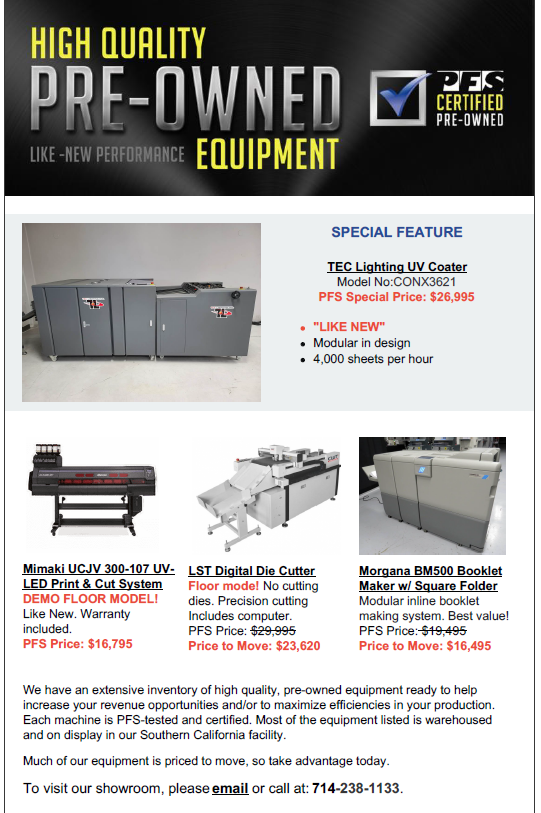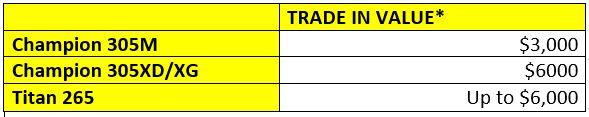 *Trade in value is determined by serial number. Call PFS to get your trade in value: 800-398-5283.