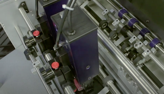Bridging the production gap between existing flat sheet collating / bookletmaking systems and conventional high-volume saddle stitching lines. Eliminates signature folding as offset or digitally printed flat-sheet signatures are fed from the collator to produce true saddlestitched booklets with full bleed trimming.