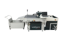 Omnia has been designed to automatically feed and contour cut media. The operator can load material up to 60 cm x 80 cm in size. Omnia will feed media to the cutting arm using a suction system that lifts media from the feeder and drags it onto the conveyor. The feeder holds up to 500 sheets, depending on thickness. Once in position, the camera will detect crop marks and execute the cut file for the pre-printed graphics. The completed sheets drop into the catch tray.